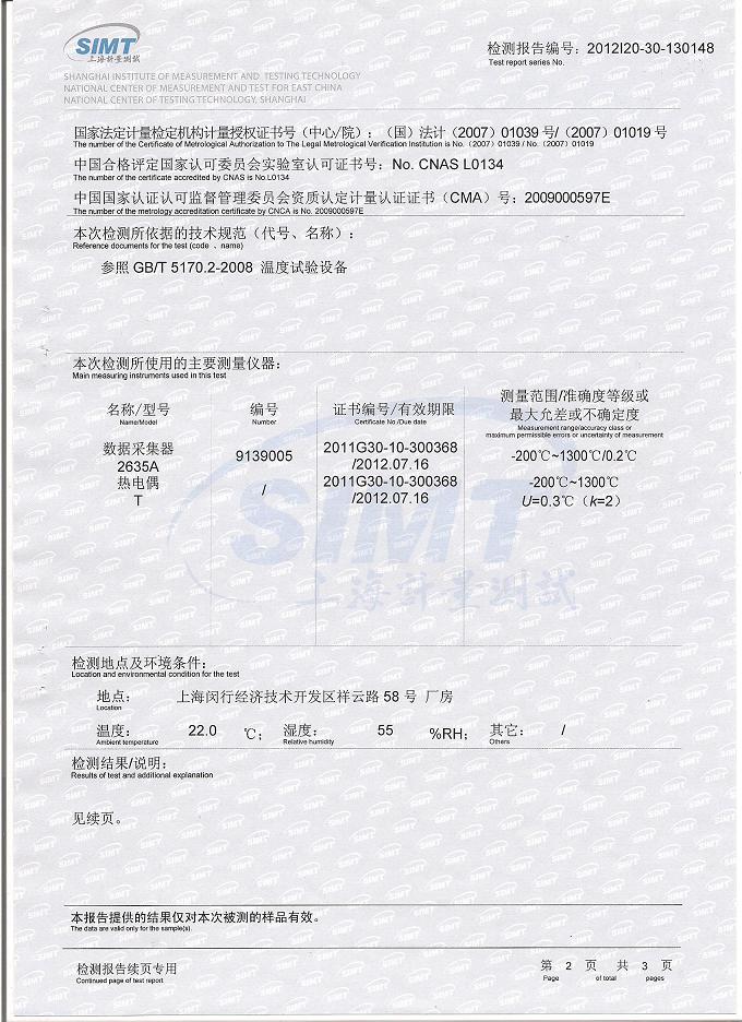 >>高低溫交變試驗箱檢測報告-上海計量院-公安部