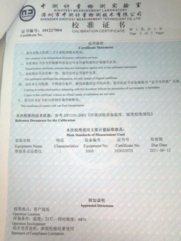 ·高低溫交變濕熱試驗箱校準證書-深圳中測計量-深圳精銳通